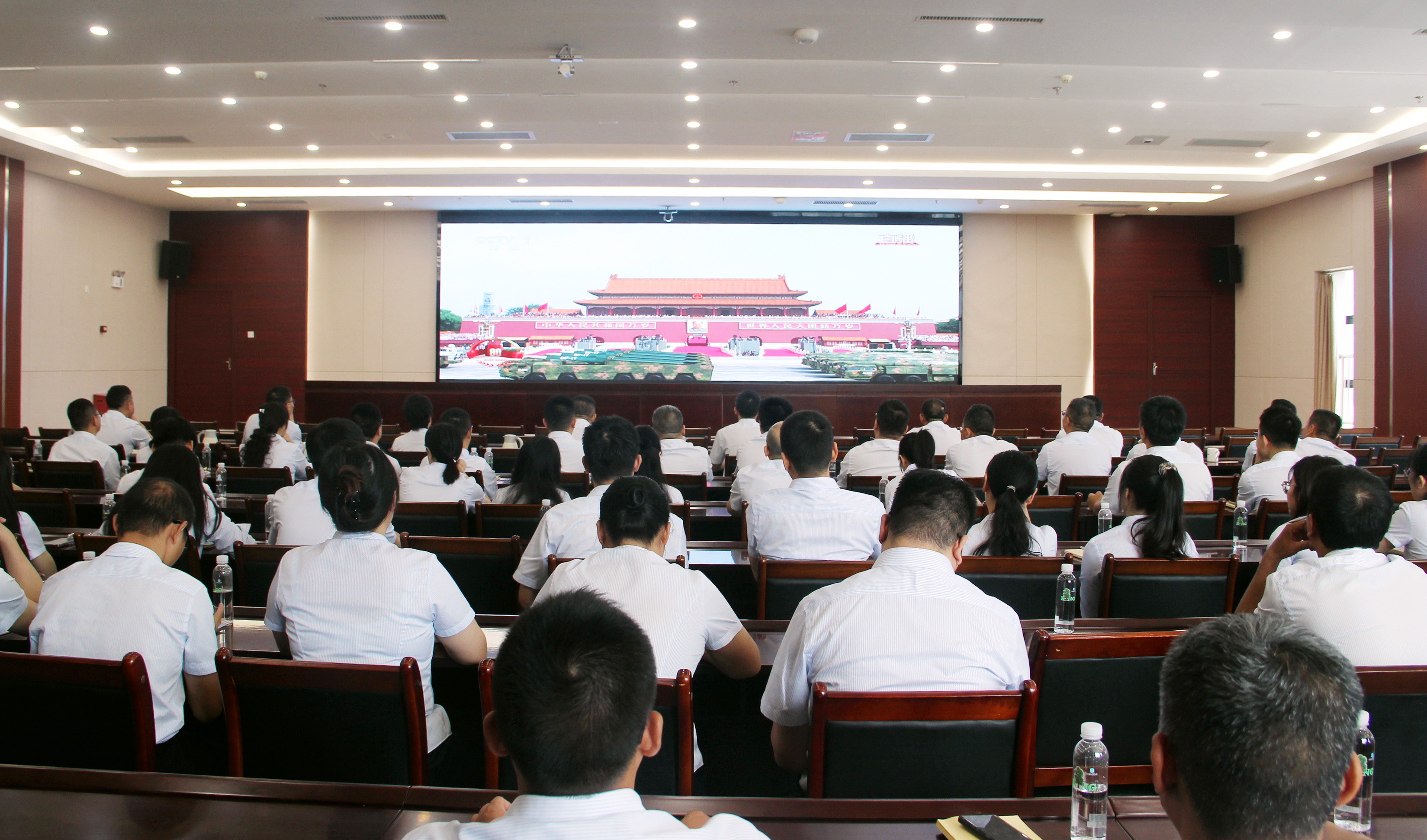 9时整,雄壮的国歌声响彻会场,全体职工自发肃立,齐声高唱,激昂的旋律激荡着每个人的胸怀。随后,大家全神贯注聆听习近平总书记的重要讲话,重温那段烽火连天、救亡图存的壮烈历史。