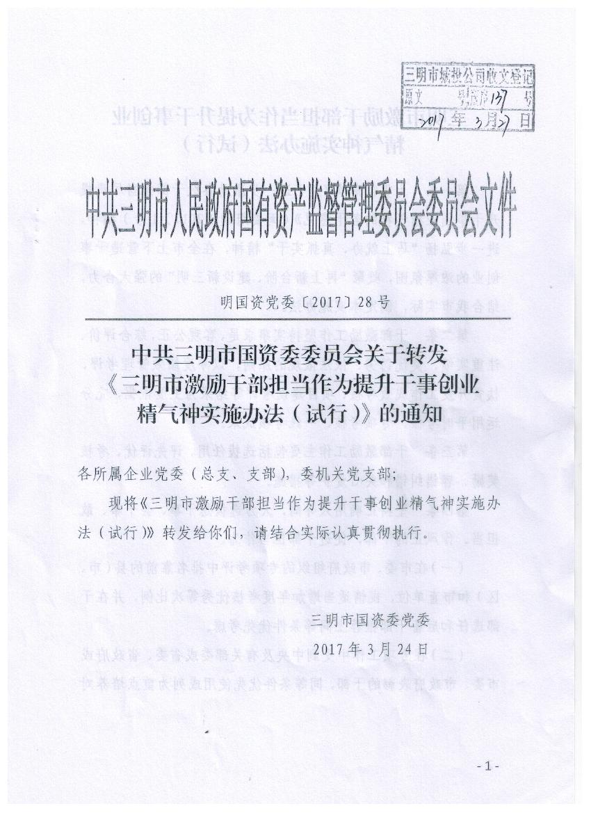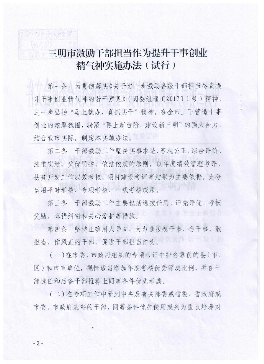 关于转发《三明市激励干部担当作为提升干事创业精气神实施办法(试行)》的通知